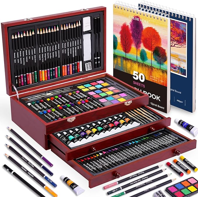 ✅ Safe & Environmental: All the art supplies are in one wooden case and each crayons, pencils and pastels in this art box are non-toxic.Color More artist set is an ideal gift for adults, students, artists, or any art lovers.